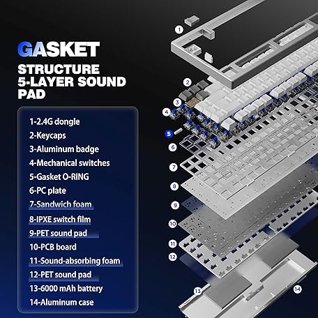 Thông tin sản phẩm YUNZII AL75 75% Gaming Keyboard, Aluminium Wireless Mechanical Keyboard BT/2.4G/Wired Hot Swap Pre-loaded Creamy Keyboard, TKL Gasket Mounted RGB Backlit Keyboard (Silver, Cocoa Cream Switch)
