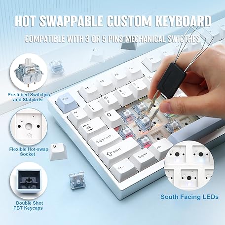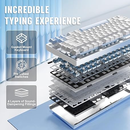 Thông tin sản phẩm YUNZII AL75 PRO 75% Wireless Gaming Keyboard, BT/2.4G/Wired Mechanical Aluminium Keyboard with PBT Keyboards, Gasket Mounted Hot Swap RGB Custom Keyboard for Mac/Win (Silver, Gateron Zero Linear)