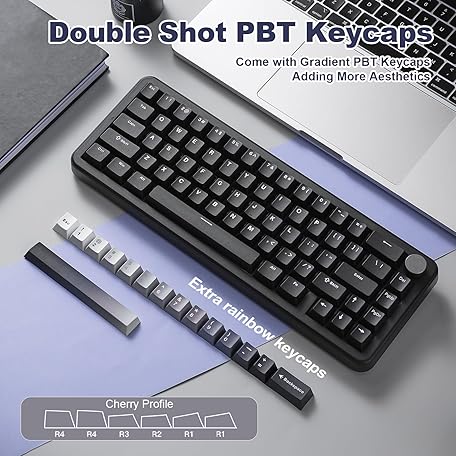 Thông tin sản phẩm YUNZII B68 Wireless Mechanical Keyboard, Tri-Mode BT5.0/2.4GHz/USB-C Hot Swappable Gasket Creamy Keyboard, RGB Backlit NKRO, Cute Keyboard for Win/Mac (Black, Cocoa Cream v2 Switch)