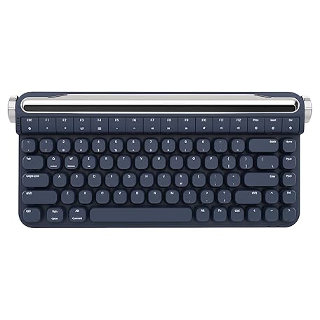 YUNZII B703 Retro Typewriter Keyboard, 75% Mechanical Keyboard, Bluetooth & Wired 84 Key Gaming, Rotary Knob, Built-in Stand for Windows/Mac (Outemu Red Switch, Blue)