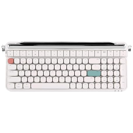 YUNZII B705 Pro Retro Typewriter Keyboard, 100 Keys, Bluetooth & Wired Mechanical Gaming Keyboard, Round Buttons, Rotary Knob (Gateron Brown Switch with RGB, Ivory)