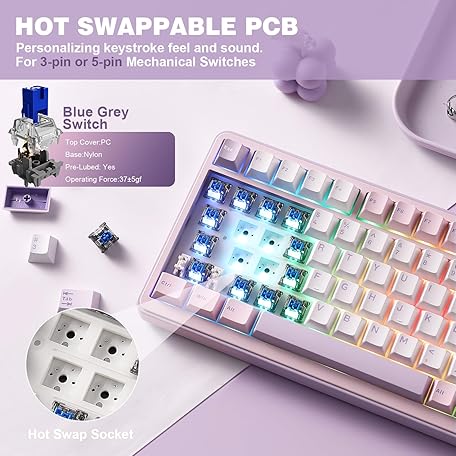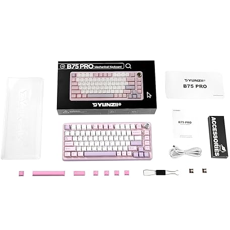 Thông tin sản phẩm YUNZII B75 PRO Wireless Mechanical Keyboard, 75% Gaming Keyboard Seal, Hot Swap Custom with Button, Pre-Lubricated Switches, RGB, Bluetooth/Type-C/2.4G Creamy Keyboard (Blue Grey Switch, Purple)