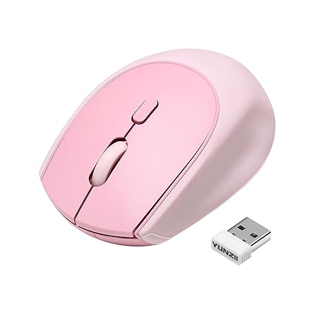 YUNZII C2 Wireless Gaming Mouse, 2.4GHz Silicone Silent Wireless Mouse, 3 Adjustable DPI, 1600 DPI Tracking, Ergonomic for Laptop/PC/Mac (Pink)