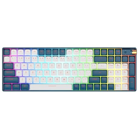 YUNZII R100 Wireless Mechanical Keyboard, 1800 Layout Tri-Mode Wired/Wireless Gaming Keyboard, Hot Swappable RGB Backlit for Gamer/Mac/Win (TTC Gold Pink, R100 Blue)