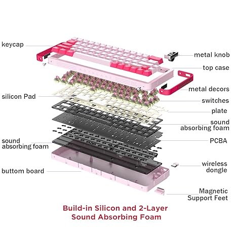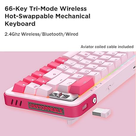 Thông tin sản phẩm YUNZII Royalaxe Y68 65% Hot-Swappable Wireless Mechanical Keyboard with RGB Backlight, Double Shot PBT Keycaps for Gamer/Mac/Win (Gateron Pro Red, Y68 Pink)