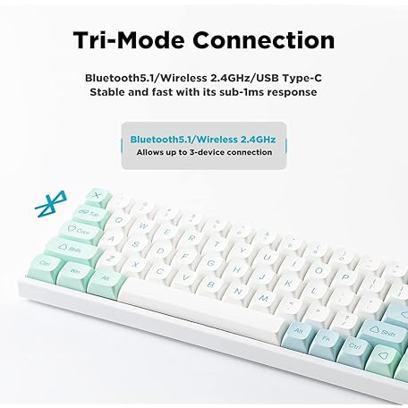 Thông tin sản phẩm YUNZII YZ68 Mint Wirelss Hot Swappable Mechanical Keyboard 68 Keys Gaming Keyboard, RGB Backlight for Mac/Win/Gamers (Gateron Blue Switch, Mint)