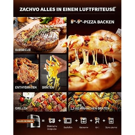 Thương hiệu ZACHVO là cái tên nổi tiếng được rất nhiều khách hàng trên thế giới chọn lựa. Với kiểu dáng đẹp mắt, sang trọng, sản phẩm ZACHVO Hot Air Fryer XXXL, 15 L Airfryer with 1700 W, 10 Programmes, Timer Function, Touch Display, Rotary Grill Dehydrator, Low Fat, Energy-Saving, Dehydrator, Includes Accessories là sự lựa chọn hoàn hảo nếu bạn đang tìm mua một món cho riêng mình.