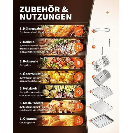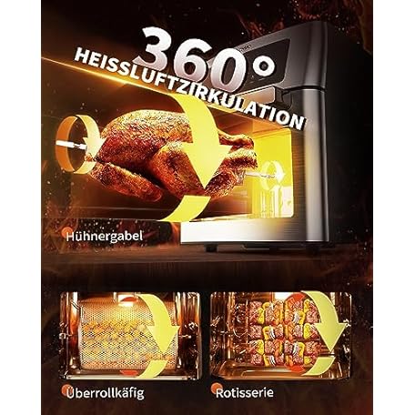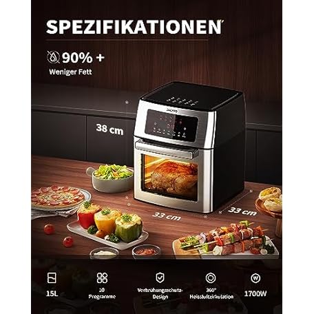 Thông tin sản phẩm ZACHVO Hot Air Fryer XXXL, 15 L Airfryer with 1700 W, 10 Programmes, Timer Function, Touch Display, Rotary Grill Dehydrator, Low Fat, Energy-Saving, Dehydrator, Includes Accessories