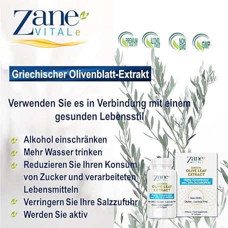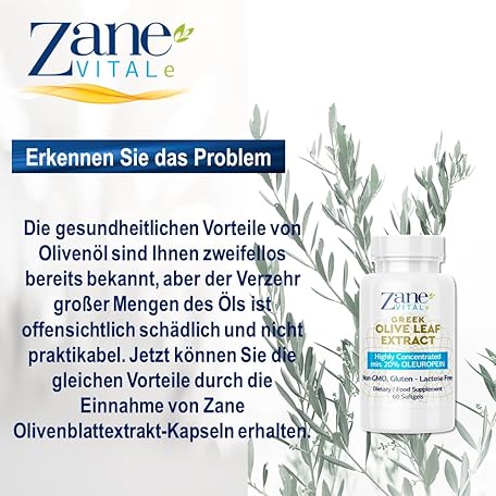 Sản phẩm Zane Greek Olive Leaf Extract, Min. 20% Oleuropein, Provides Support for the Immune System and Healthy Blood Pressure, Promotes Cardiovascular System Health, GMO-free, Gluten. đang được bán với giá ưu đãi là $24.2852 tại nước Đức.