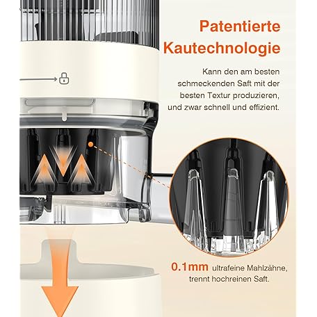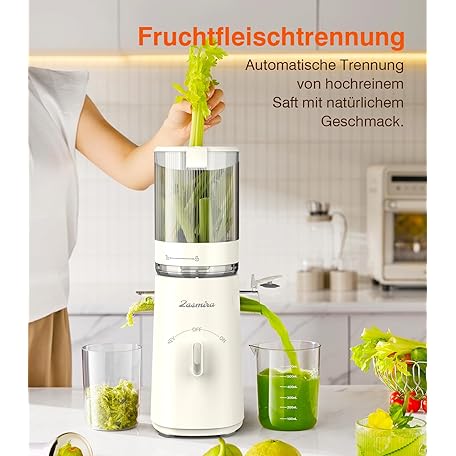 Thông tin sản phẩm Zasmira Juicer, slow juicer with high torque and 120 mm filling shaft, no pre-cutting juicer for vegetables and fruits, 99.6% juice purity, 1.5 L, REV mode, easier to clean