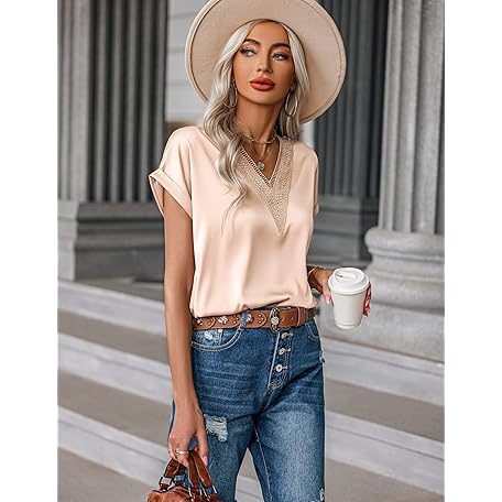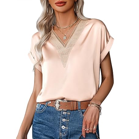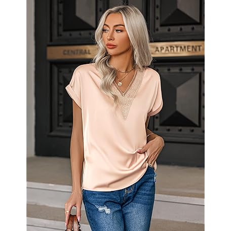 Sản phẩm Zeagoo Blouse Women's Lace V-Neck Satin Shirt Short Sleeve Blouses Tunic Summer Tops Elegant Loose T-Shirt đang được bán với giá ưu đãi là $30.8143 tại nước Đức.