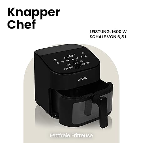 Thông tin sản phẩm ZEEGMA KNAPPER CHEF Hot Air Fryers 1600 W, Capacity 6.5 L, Timer up to 60 Minutes, 9 Automatic Programmes, Temperature 60-200 °C, Instant Heating in 60 Seconds (CHEF)