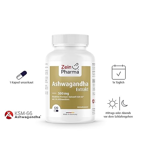 Sản phẩm ZeinPharma Ashwagandha Extract 120 Capsules 500 mg - Ashwagandha Root Extract High Dose with 5% Withanolide, Sleep Berry from India, Dietary Supplement Plant-Based, Laboratory Tested đang được bán với giá ưu đãi là $31.9915 tại nước Đức.