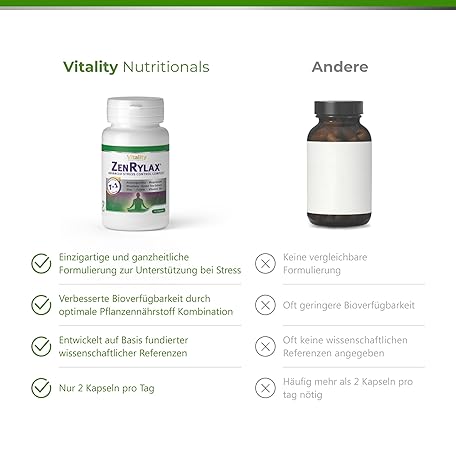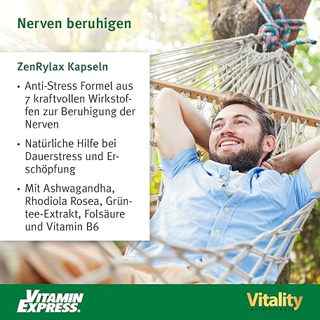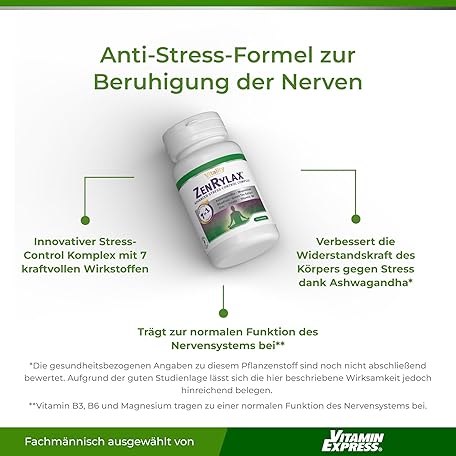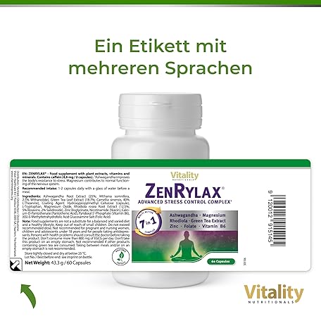Sản phẩm Zenrylax Vitality Nutritionals by VitaminExpress Anti Stress Capsules with Ashwagandha, Green Tea, Vitamins and Minerals (Pack of 60) Permanent Stress, Exhaustion, Strong Nerves đang được bán với giá ưu đãi là $44.9843 tại nước Đức.