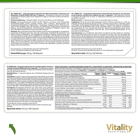 Thông tin sản phẩm Zenrylax Vitality Nutritionals by VitaminExpress Anti Stress Capsules with Ashwagandha, Green Tea, Vitamins and Minerals (Pack of 60) Permanent Stress, Exhaustion, Strong Nerves