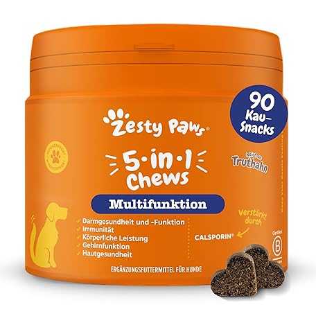 Sản phẩm Zesty Paws 5-in-1 Multivitamin for Dogs, Soft Dog Treats, Biotin for Dogs for the Brain, Intestinal Function & Skin, Well-being, Performance and Against Stress, for All Dogs, Pack of 90 đang được bán với giá ưu đãi là $27.5552 tại nước Đức.