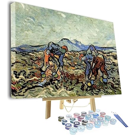 ZEYUPAIN Malen nach Zahlen für Erwachsene, Bauern, die Kartoffeln heben, von Vincent Van Gogh gerahmt und Staffelei, Malen-nach-Zahlen-Set für Erwachsene für Anfänger auf Leinwand