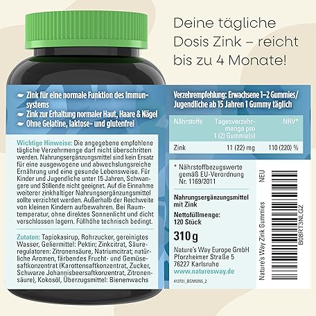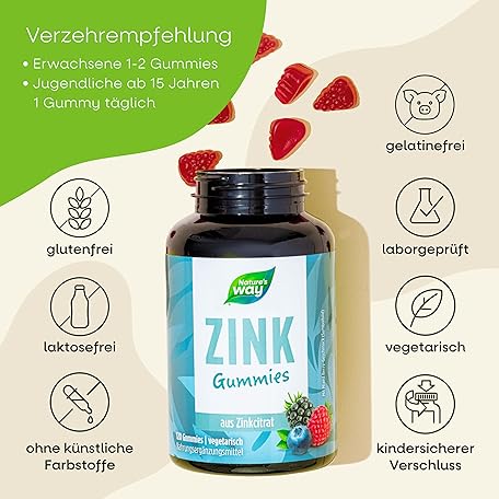 Thương hiệu NATURE'S WAY là cái tên nổi tiếng được rất nhiều khách hàng trên thế giới chọn lựa. Với kiểu dáng đẹp mắt, sang trọng, sản phẩm Zinc Gummy Bears for Skin Hair Nails - Pack of 120 High Dose Zinc with 22 mg Zinc Citrate as an Alternative to Capsule - Strengthens the Immune System / for Blemished Skin - Vegetarian Gummies là sự lựa chọn hoàn hảo nếu bạn đang tìm mua một món cho riêng mình.