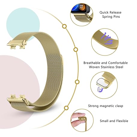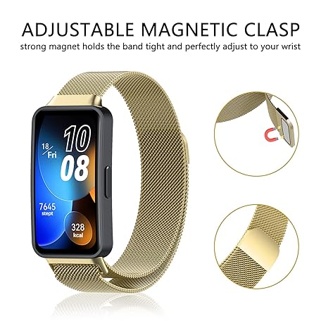 Thông tin sản phẩm ZoRoll Bracelet Compatible with Huawei Band 10/9/8, Stainless Steel Replacement Strap, Mesh Metal Watch Strap, Magnetic Adjustable Replacement Strap Compatible with Huawei Band 10/9/8 - Gold