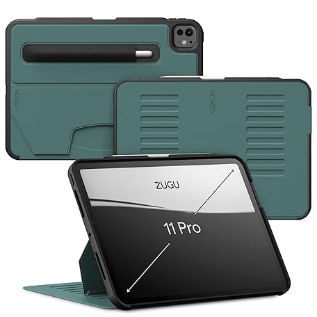 ZUGU CASE iPad Pro 11 Zoll Hülle (M4 / M5) 2024/2025 schlanke Schutzhülle 8 Winkel-Ständer magnetisch, Aufladen iPad Stiftes Auto Sleep/Wake Up [ Pro11 Kieferngrün ]