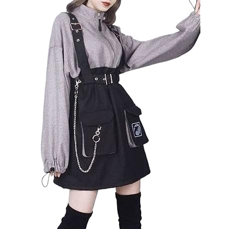 ZYSWCHB Women's Gothic Punk Lolita Dress High Waist Long Sleeve Fake Two Piece Contrast Patchwork Dresses