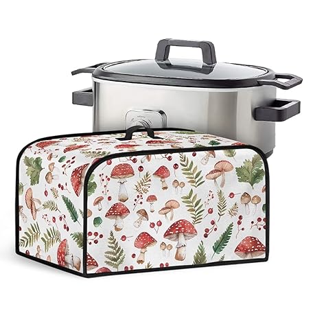 • マッシュルーム クロックポットカバー 耐性 楕円形 スロークッカーカバー トップハンドル付き キッチン家電カバー スロークッカー保護ケース スロークッカーカバー ホームキッチン用