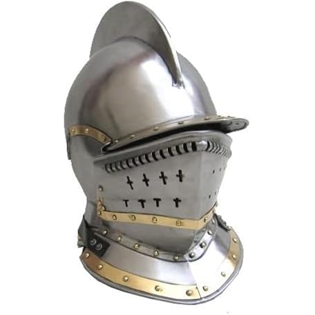Sản phẩm 中世の騎士ベルゴネットヘルメット、真鍮のアクセント付きシルバーメタルアーマー、装飾クロスデザイン、歴史的コスチュームレプリカ đang được bán với giá ưu đãi là $254.3733 tại nước Nhật.