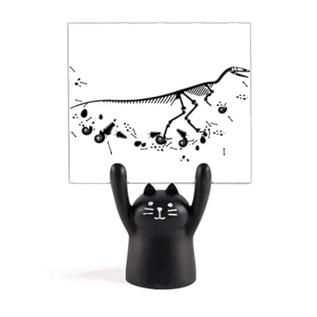 巨大な恐竜の骨の化石の草 カートゥーン黒猫スタンド型メモホルダー装飾