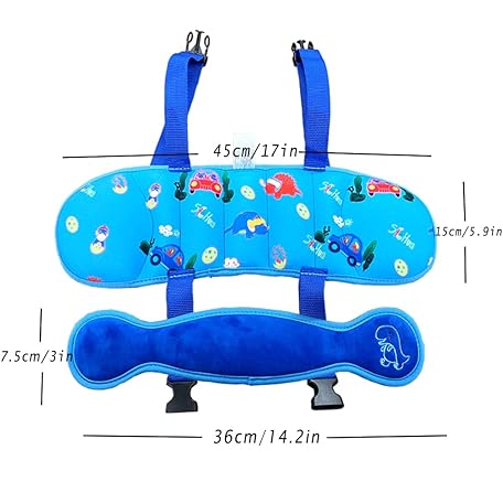 幼児用カーシートヘッドサポート、子供用調節可能なカーシートネックサポート、ヘッドバンドストラップヘッドレストソフトネック保護ベルト、子供用ブルーダイナソー