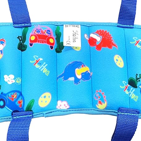 • 幼児用カーシートヘッドサポート、子供用調節可能なカーシートネックサポート、ヘッドバンドストラップヘッドレストソフトネック保護ベルト、子供用ブルーダイナソー