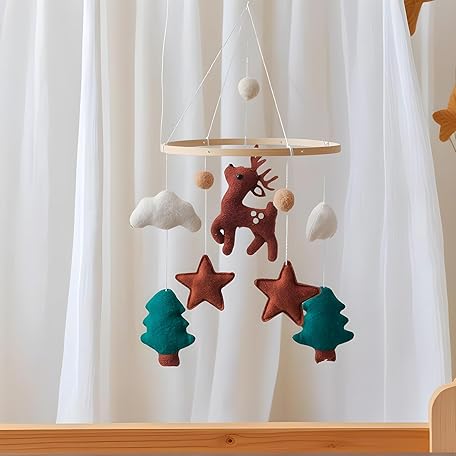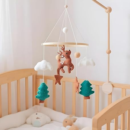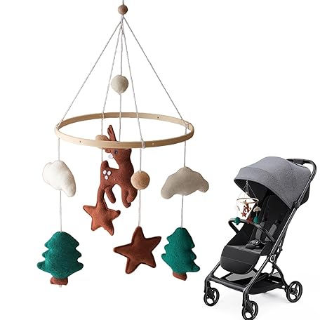 • ナーサリーモビール - 木製鹿 保育室装飾 | 手作りベビーカーアクセサリー 子供部屋 遊び時間 カーシート お昼寝 誕生日