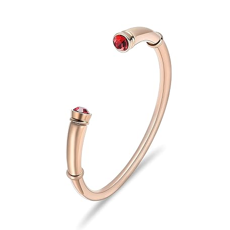 • 誕生石 遺灰用 火葬ブレスレット ステンレススチール ローズゴールド 骨壷 メモリアルジュエリー 象嵌クリスタルバングル 記念品 女性用 - レッド