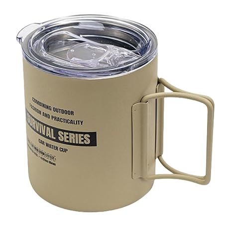 • ステンレススチールキャンプマグ、ステンレススチールコーヒーマグ,トラベルコーヒーカップ折りたたみ式ハンドルと蓋付きドリンクカップ - コーヒー、ミルク、ジュース、紅茶、その他の冷たい飲み物または温かい飲み物用の320mlのポータブルカップ