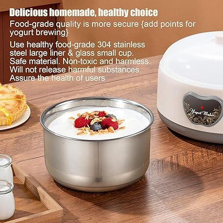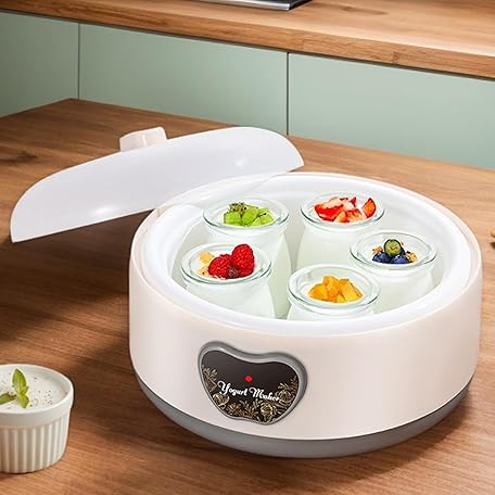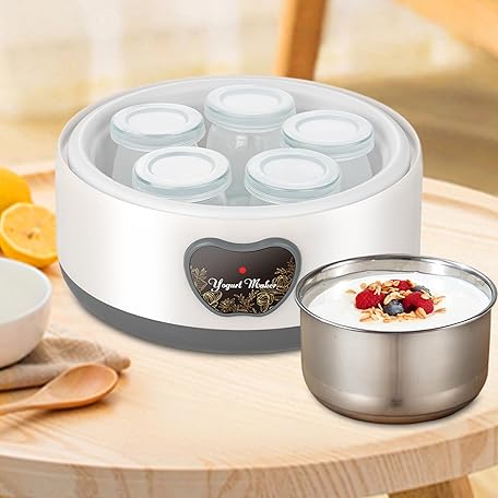 • エレクトリックヨーグルトメーカーマシン、ヨーグルトメーカーマシン - 再利用可能な5カップヨーグルトポットマシン付き蓋付き - 自家製の容器、ホームキッチン用のホームヨーグルトインキュベータークロックポット