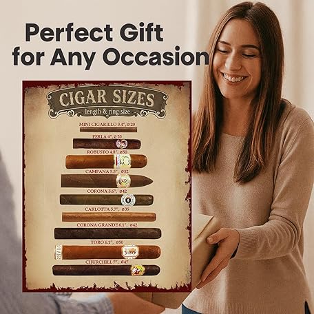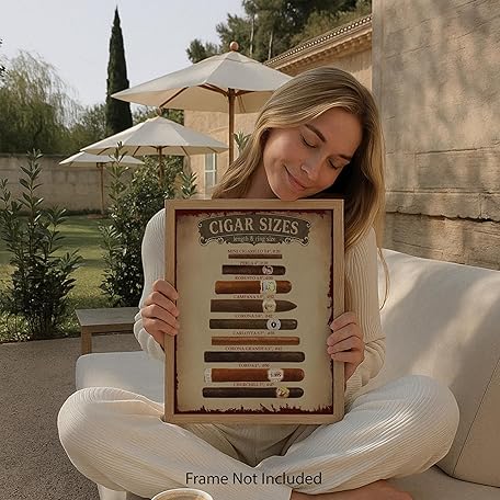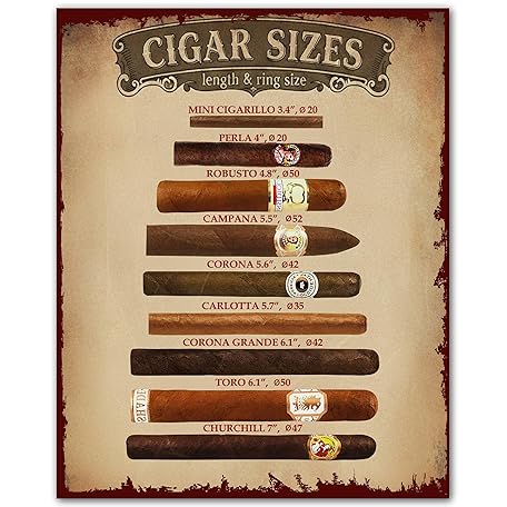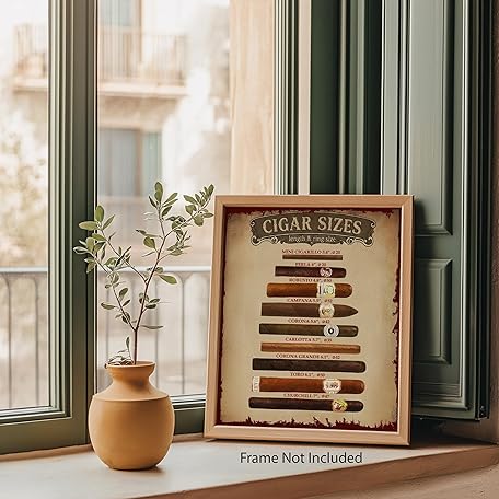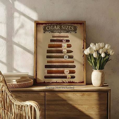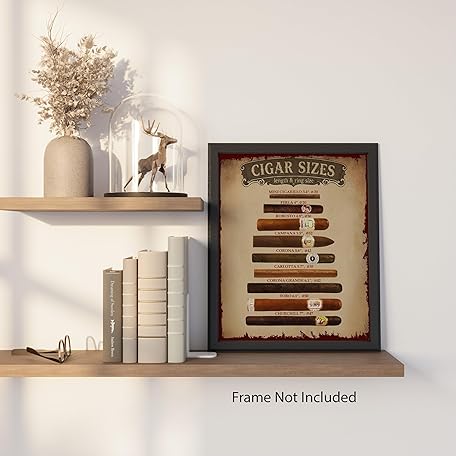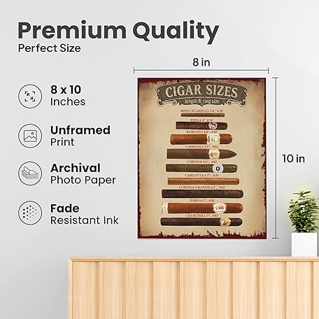 • ヴィンテージ葉巻サイズ表ポスター - 葉巻ウォールアート - 男性の洞窟のための葉巻サイン - シガーラウンジ装飾 - ヴィンテージ葉巻ポスター - シガーバーアクセサリー - フレームなし 8x10インチ 男性用葉巻装飾 - オフィスの壁