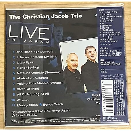 Sản phẩm クリスチャン・ジェイコブ・トリオ・ライヴ・イン・ジャパン+1(紙ジャケット仕様) đang được bán với giá ưu đãi là $20.8735 tại nước Nhật.