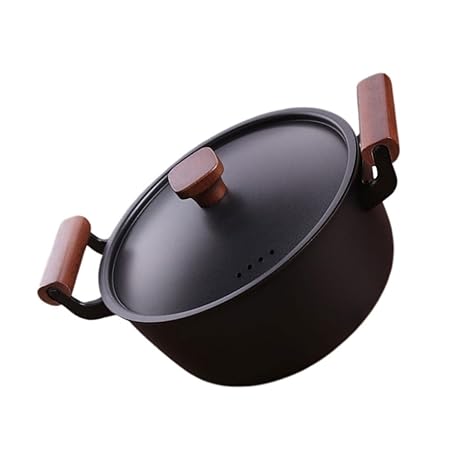 1個 コーティングされていないテフロン加工のフライパン ふた付きオーブンポット スチールパン すき焼き pot ノンスティック調理器具 しっかりとしたスープポット 木製 Black
