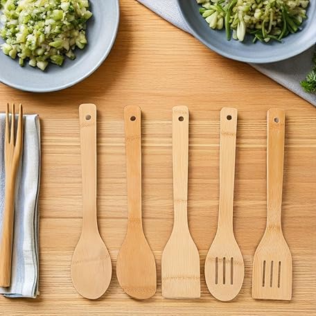 • 10個 こびりつきにくい竹 テフロン加工のフライパン 焦げ付き防止の調理ツール 新築祝いのキッチンツール 竹裏返し テフロン加