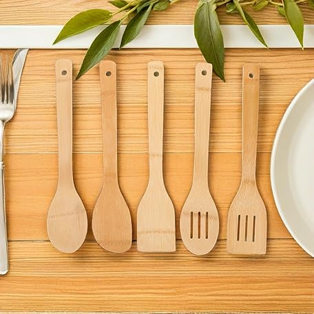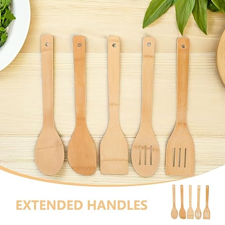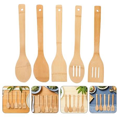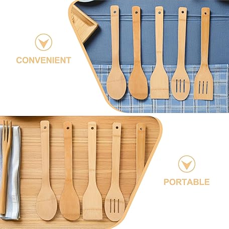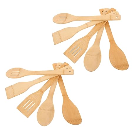 10個 テフロン加工のフライパン オムレツひっくり返しの道具 溝付き竹ターナー キッチン必需品スパチュラ 竹ステーキターナー 竹製