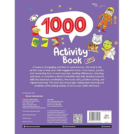 1000 Activity Book - Mazes, Dot to Dot, Spot the Difference and Matching - Fun Early Learning Activity Books for Kids - 3 Years to 5 Years Old Children