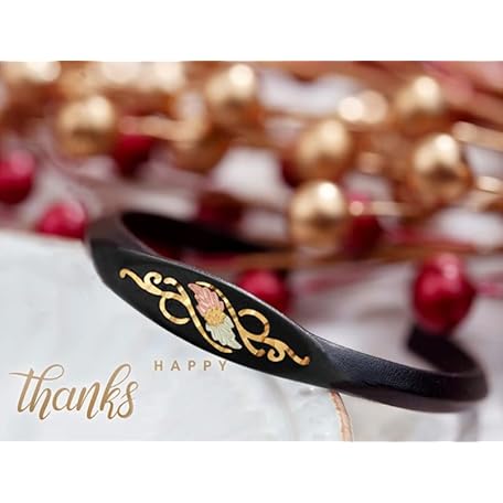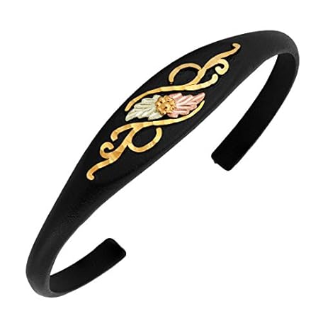 • ブラックリーフカフブレスレット 10Kイエローゴールド 12Kローズとグリーンゴールド ブラックヒルズゴールドトリム 7.25インチ, 金属, 非対応