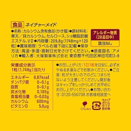 Sản phẩm 大塚製薬 ネイチャーメイド スーパーカルシウム 120粒 120日分 đang được bán với giá ưu đãi là $5.7552 tại nước Nhật.