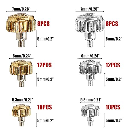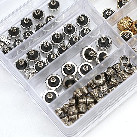 • 腕時計クラウン交換用腕時計120個。Rolex Calibre 3135 3235 3335に対応。防水ダウンスクリュー銅ブロンズリンクアクセサリー詰め合わせパーツキット、スペア修理取り外しツール(シルバーゴールドアソート)。, ゴールド, モダン
