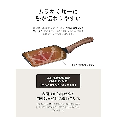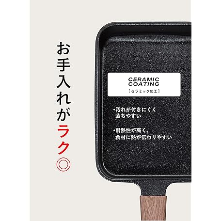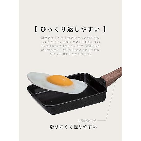 Thông tin sản phẩm シービージャパン 卵焼き フライパン 12×17cm IH対応 セラミック加工 木調ハンドル ブラック ミニ玉子焼き MC copan