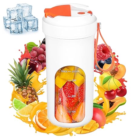 ポータブルブレンダー シェイクやスムージー用 13オンス パーソナルブレンダー USB充電式 ブレード10個付き ミニ 小型 ブレンダーボトル オフィス ジム キッチン用 (ホワイト)