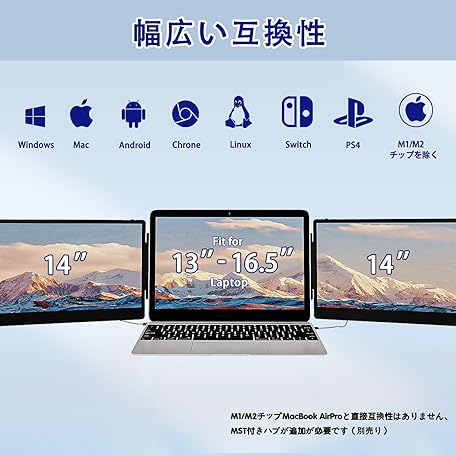 Sản phẩm 14インチ デュアルディスプレイ ポータブルモニタ 2画面 トリプルモニター 13~16.5インチノートパソコン用 デュアルモニター 180°回転 折りたたみ式 モバイルディスプレイ 120%sRGB/IPS非光沢/FHD1080P 簡単に接続 Windows/Mac/Androidに適用 S3 đang được bán với giá ưu đãi là $223.0576 tại nước Nhật.