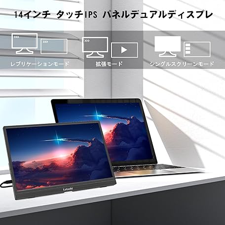 14インチ モバイルモニター Lrtzcbi タッチパネル モバイルディスプレイ 薄型 軽量 HDR IPSパネルFHD解像度1920x1080 ゲームモニター 60Hz USB Type C 標準HDMIポートPS4/PS5/XBOX/Switch/PC/Mac/Raspberry piなど対応,スピーカー内蔵,VESA75*75mm
