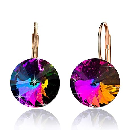 • スワロフスキー クリスタル ラウンド ドロップ イヤリング レディース 14K 金メッキ 低刺激性 レバーバック フープイヤリング