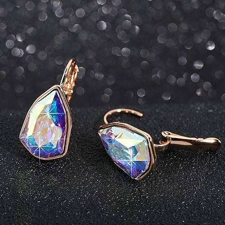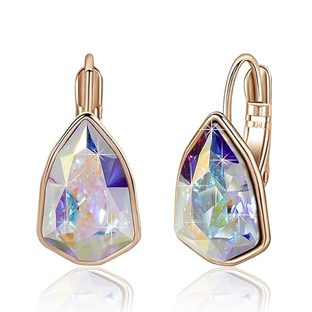 • スワロフスキー クリスタル 三角形 レバーバック ドロップイヤリング レディース 14K ローズゴールドメッキ 低刺激性ジュエリー