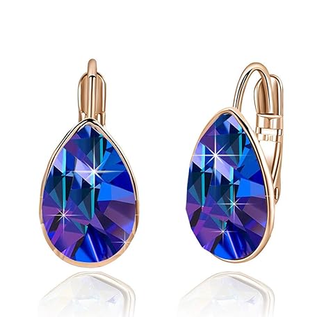 ティアドロップ スワロフスキー クリスタル レバーバック ドロップイヤリング 女性用 14K ローズゴールドメッキ 低刺激性 ジュエリー